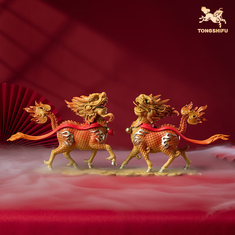 包邮 铜师傅 《麒麟献瑞》客厅书房办公室麒麟摆件招财家居装饰品工艺礼品